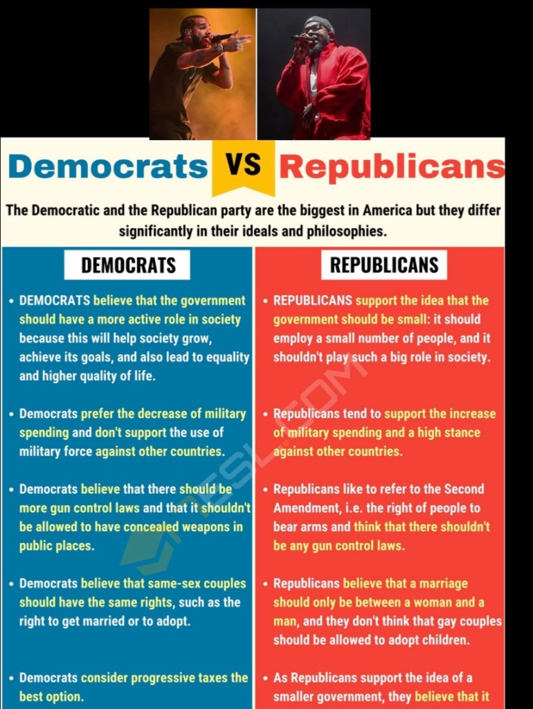 Republicans and Democrats dominate the conversation like aging label execs—out of touch, overpowered, and clinging to charts they no longer deserve to top. Instead of amplifying the voices of the people, party platforms have become echo chambers where nuance dies and obedience reigns. Voters aren’t picking the best leaders; they’re often stuck choosing the least harmful option their party spoon-feeds them.