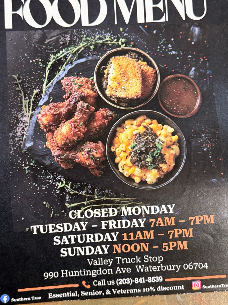 WATERBURY, CT — One of the North End’s busiest corridors now has a new go-to spot for homestyle breakfast, hearty lunches, and Southern-inspired dinner plates. Valley Truck Stop, located at 990 Huntingdon Avenue, has quickly become a neighborhood favorite thanks to its generous portions, comfort-food classics, and all-day soul-food staples with Southern Tree located adjacent.