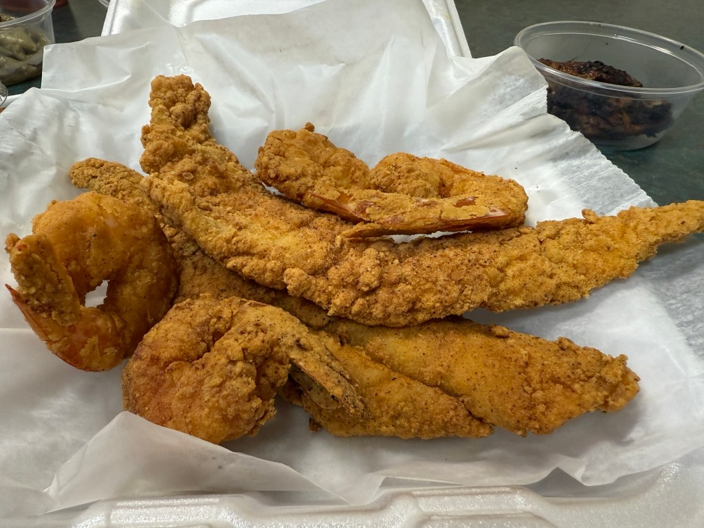- Seafood Combo (Shrimp & Fish – Whiting or Catfish) with 2 sides — $24