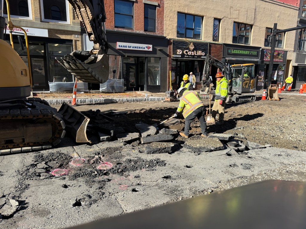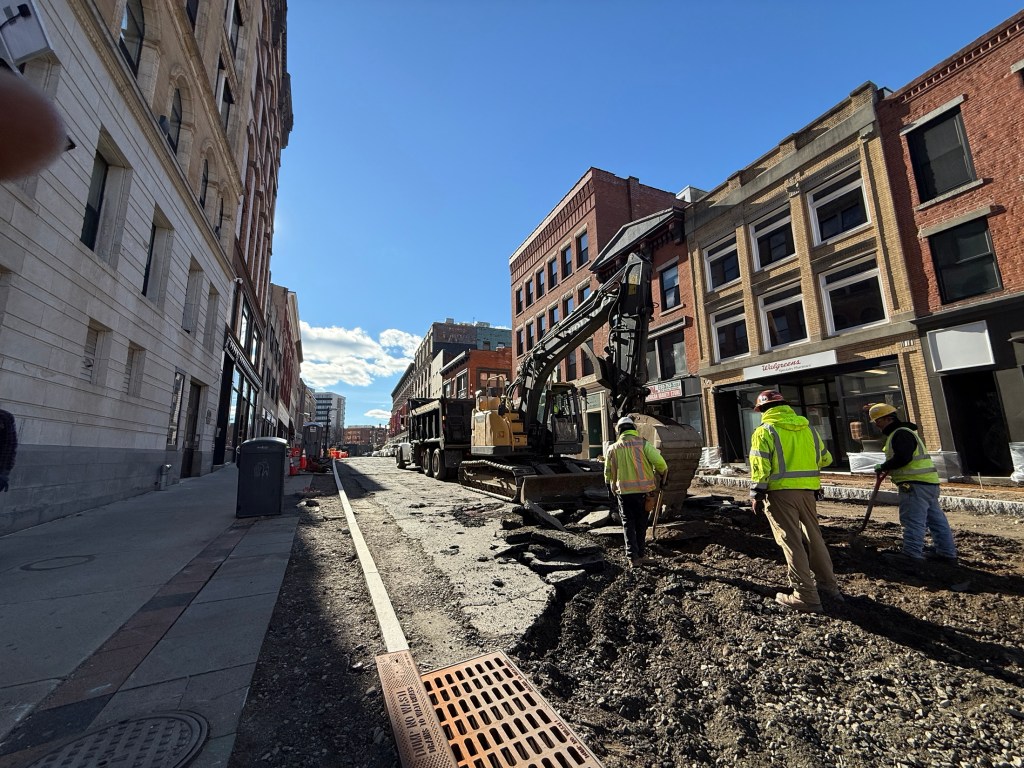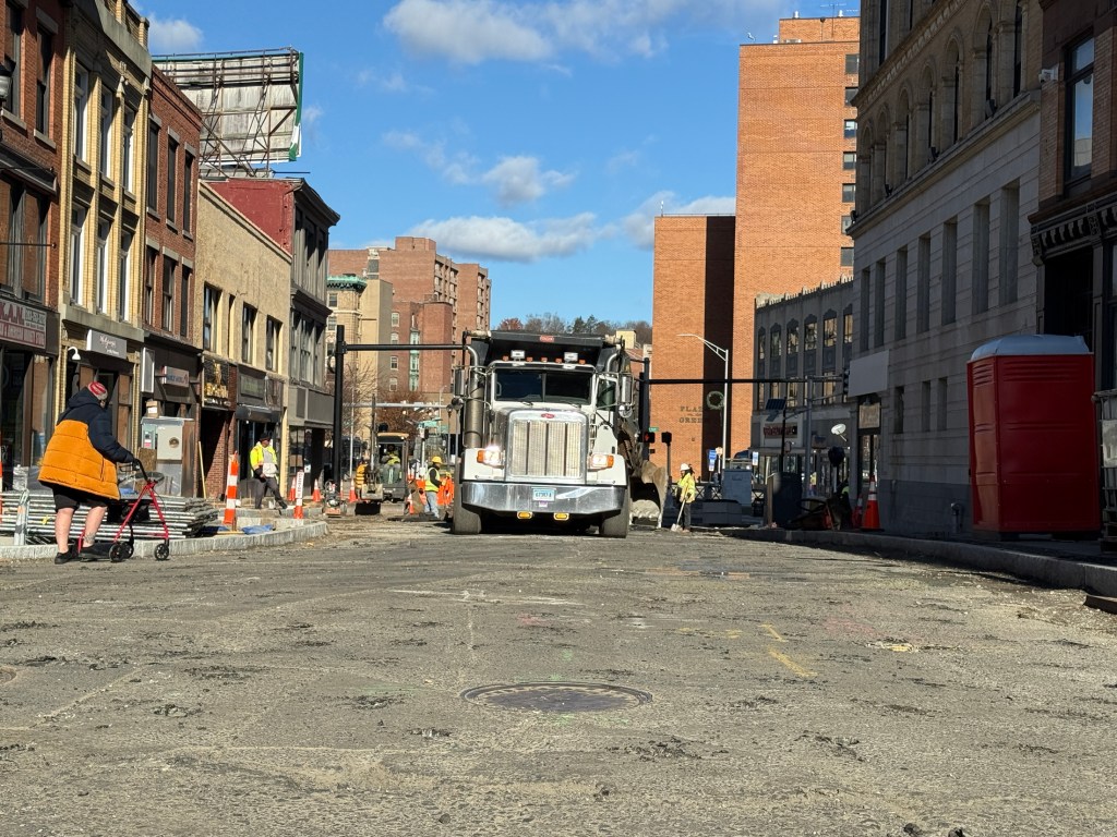 Waterbury’s Bank Street Reopens to Traffic as Sidewalk and Streetscape Work Continues
