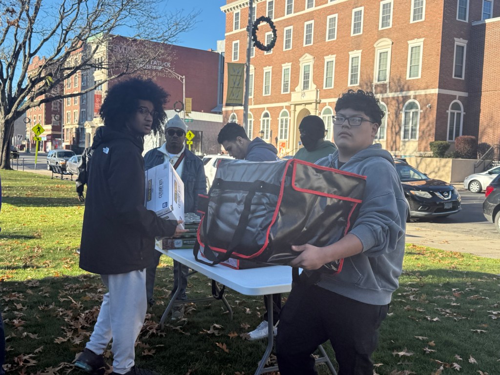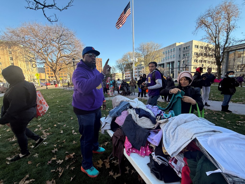 Waterbury, CT– The Mac & Cheese Mondays Thanksgiving Giveaway is officially underway on the Green, and community turnout is already strong as residents line up for warm meals, hygiene kits, and winter essentials.