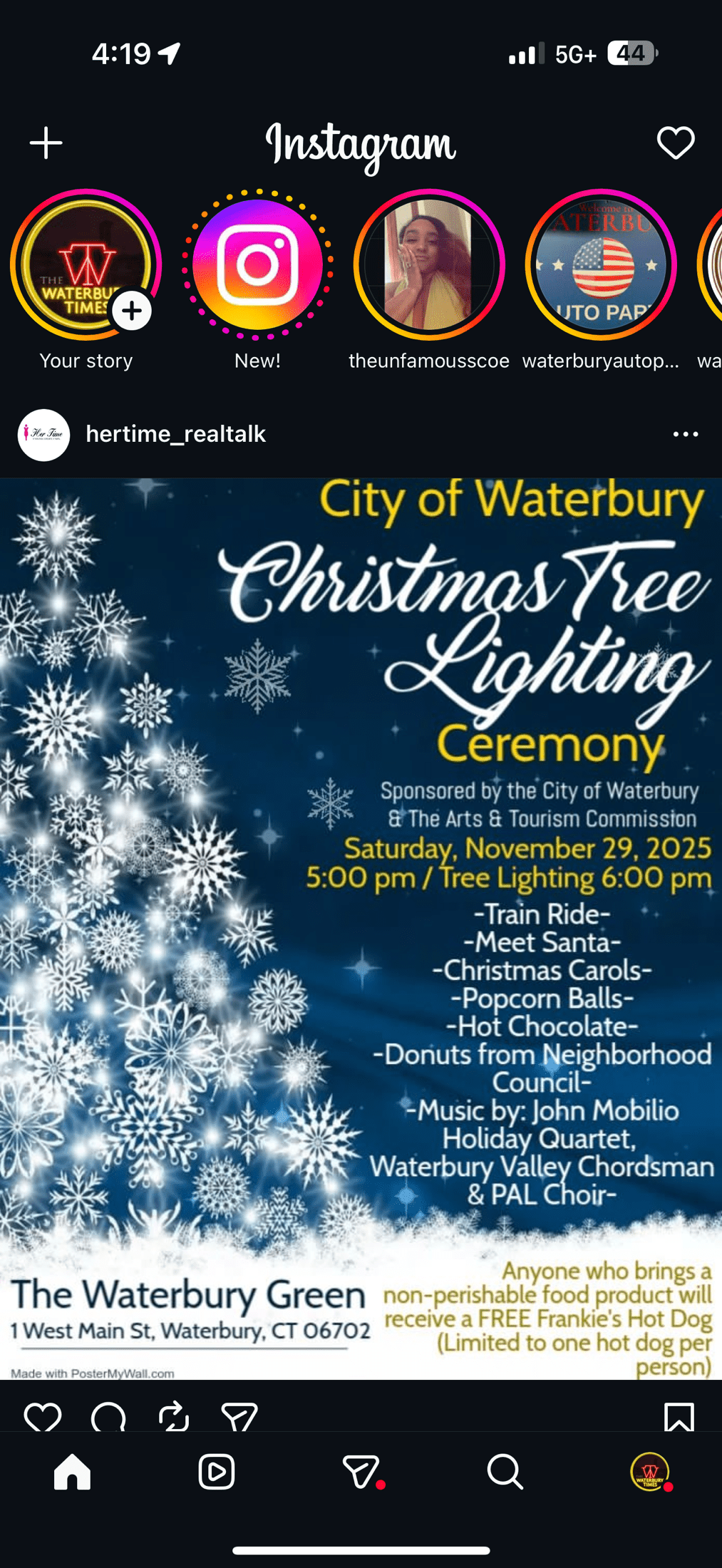 Waterbury,CT- The City of Waterbury and the Arts & Tourism Commission invite residents to the annual Christmas Tree Lighting Ceremony on the Waterbury Green.