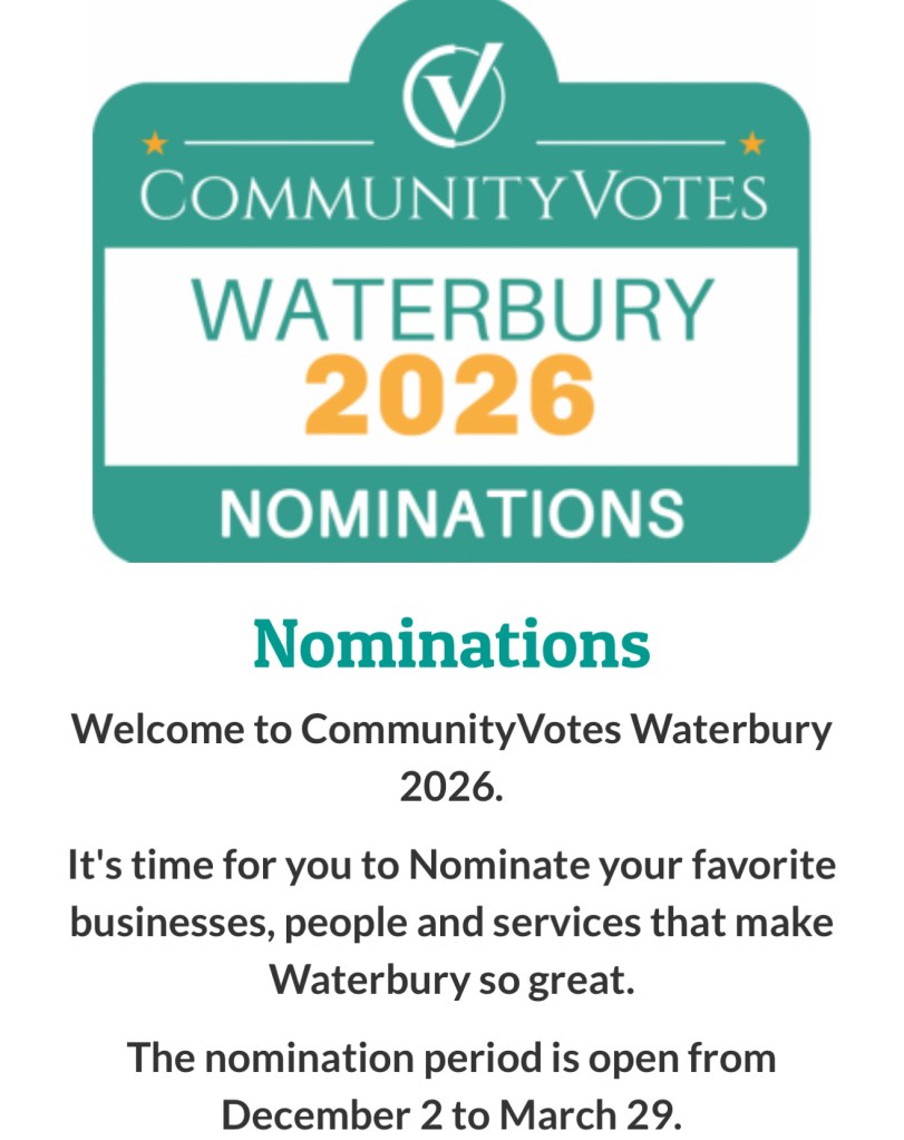 WATERBURY — The nomination period for Community Votes Waterbury 2026 is officially open, giving residents the chance to recognize the businesses, people, and organizations that make this city stronger every year.