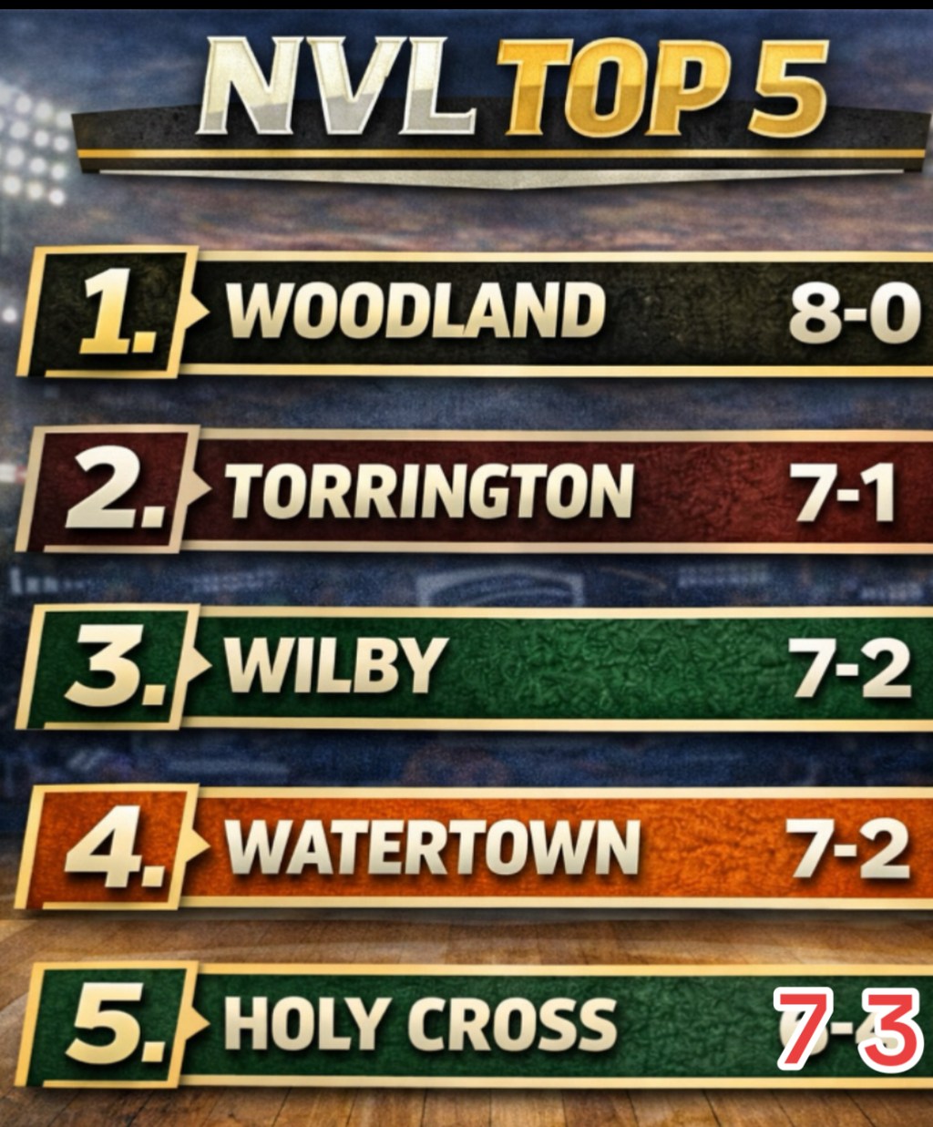 The full NVL Top 10 Power Rankings will be released by The Waterbury Times later this week