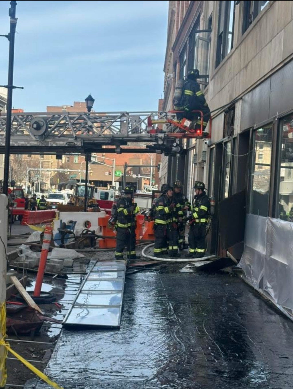 According to officials, firefighters from the Waterbury Fire Department were dispatched to the scene and quickly worked to contain the blaze. Crews were seen operating hoses and ventilating the building as smoke rose above the downtown corridor.